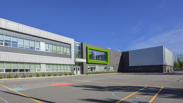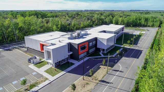 Superbe école construite au cœur d’un grand terrain boisé dans le secteur Vimont-Auteuil.
